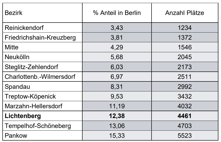 Der Bezirk Lichtenberg steht an 3. Stelle bei der Verteilung der Unterkünfte in Berlin: